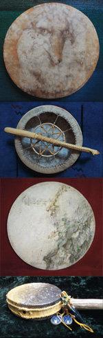 The images on my painted frame drums come from gazing, while in a light trance, at the surface of the frame drum until creatures and beings appear. You see in these paintings on deer hide that I am bringing their images from another reality into this one. My skill is in being true to the appearance they show me, and not to my fine art training.