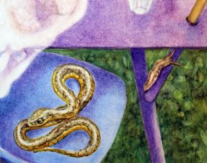 This dream painting, based on the 13th of 47 dreams received when creating the Journey Oracle Divination cards–has this question for a title, and at its heart. Sometimes it seems that the best answers show us what not to do, leaving what to do unspoken and expanding into the vast ocean of possibility.