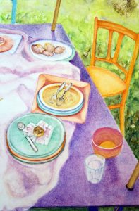 And where is everybody? Certainly some effort has been gone to, but the chairs are mostly empty and the food is waiting. It seems we sometimes put our desires ahead of the efforts of others–human and other-than-human–and therefore have no awareness, and probably no compassion, for their experience.