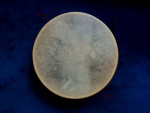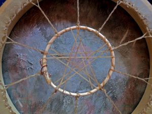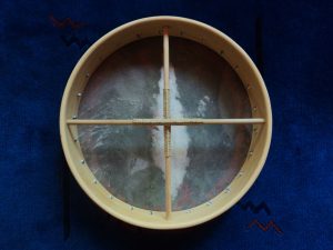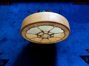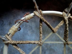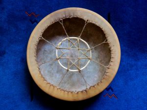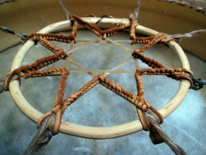 Perhaps my most creative moment is in the building of this drum. First, I didn’t prepare the hide but traded the work in exchange for helping someone else build a drum, so it has been a surprise to discover the deep rich voice resulting from another’s careful knife work.