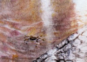 Like the tiny creature in the puddle. This is how the urge to make art feels to me. Doesn’t quite make sense appearing in the ordinary day of work and library books and my turn to make dinner. But there it is. And I only have to turn slightly to see.